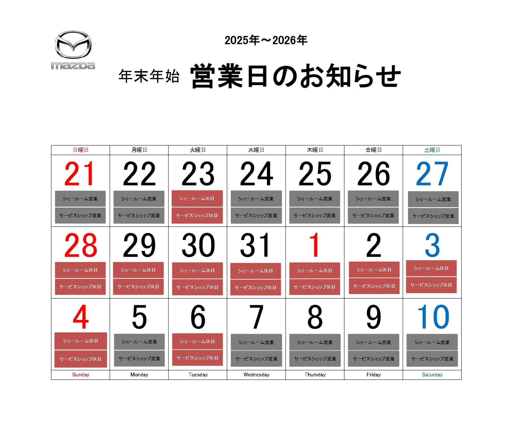 平素よりマツダオートザム長岡南をご利用いただき誠にありがとうございます。